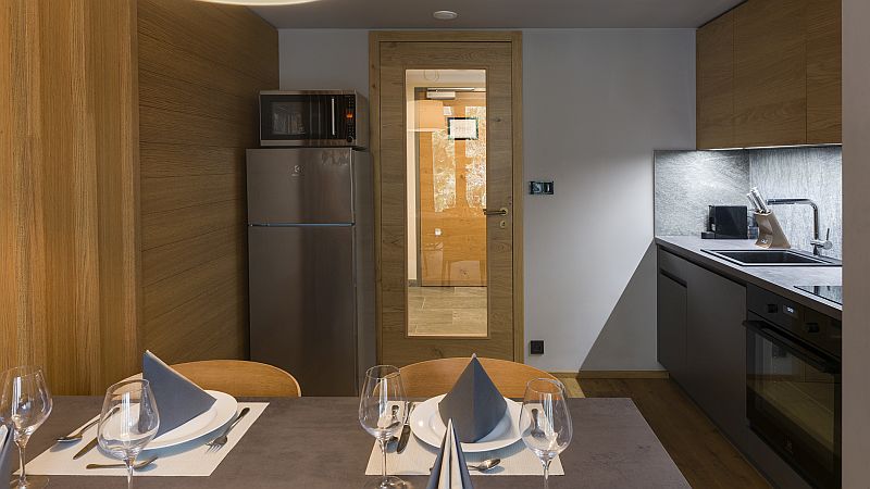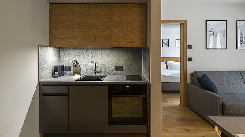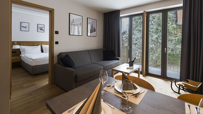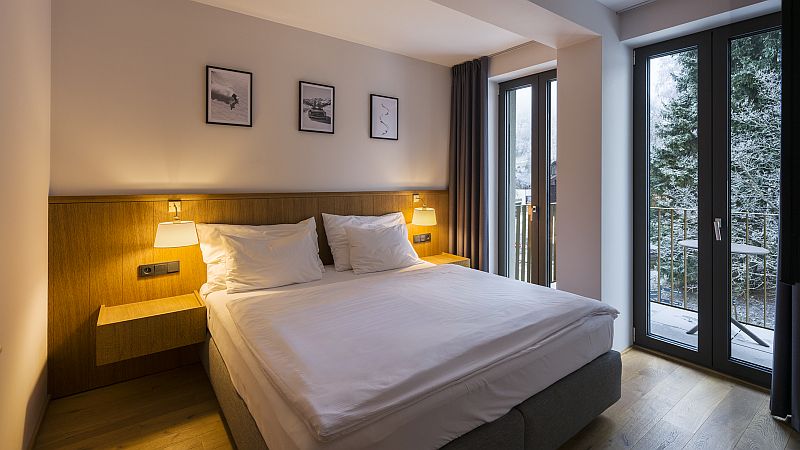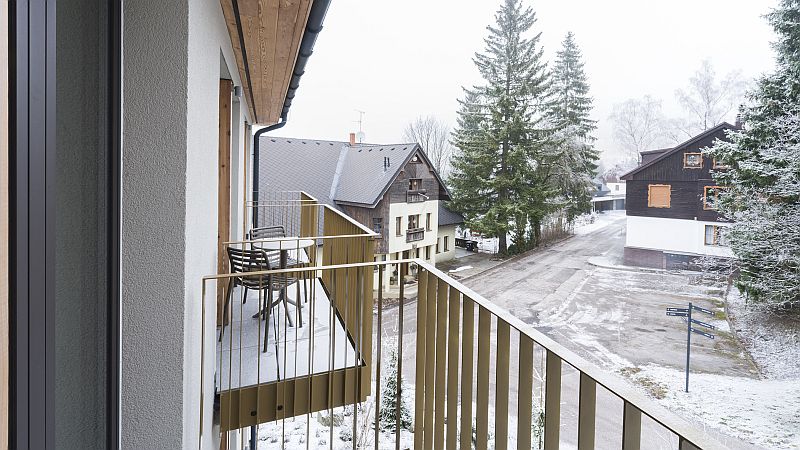 Místo, kde se elegance potkává s horským klidem. Náš apartmán až pro 4 osoby nabízí stylový, útulný interiér, který kombinuje moderní design s hřejivými materiály. Čeká na Vás plně vybavená kuchyně, moderní koupelna se sprchovým koutem a WC, oddělená ložnice s manželskou postelí i balkon s posezením pro Váš šálek ranní kávy. Věřte, že výhledy z oken vás budou bavit stejně jako pohodlí uvnitř.